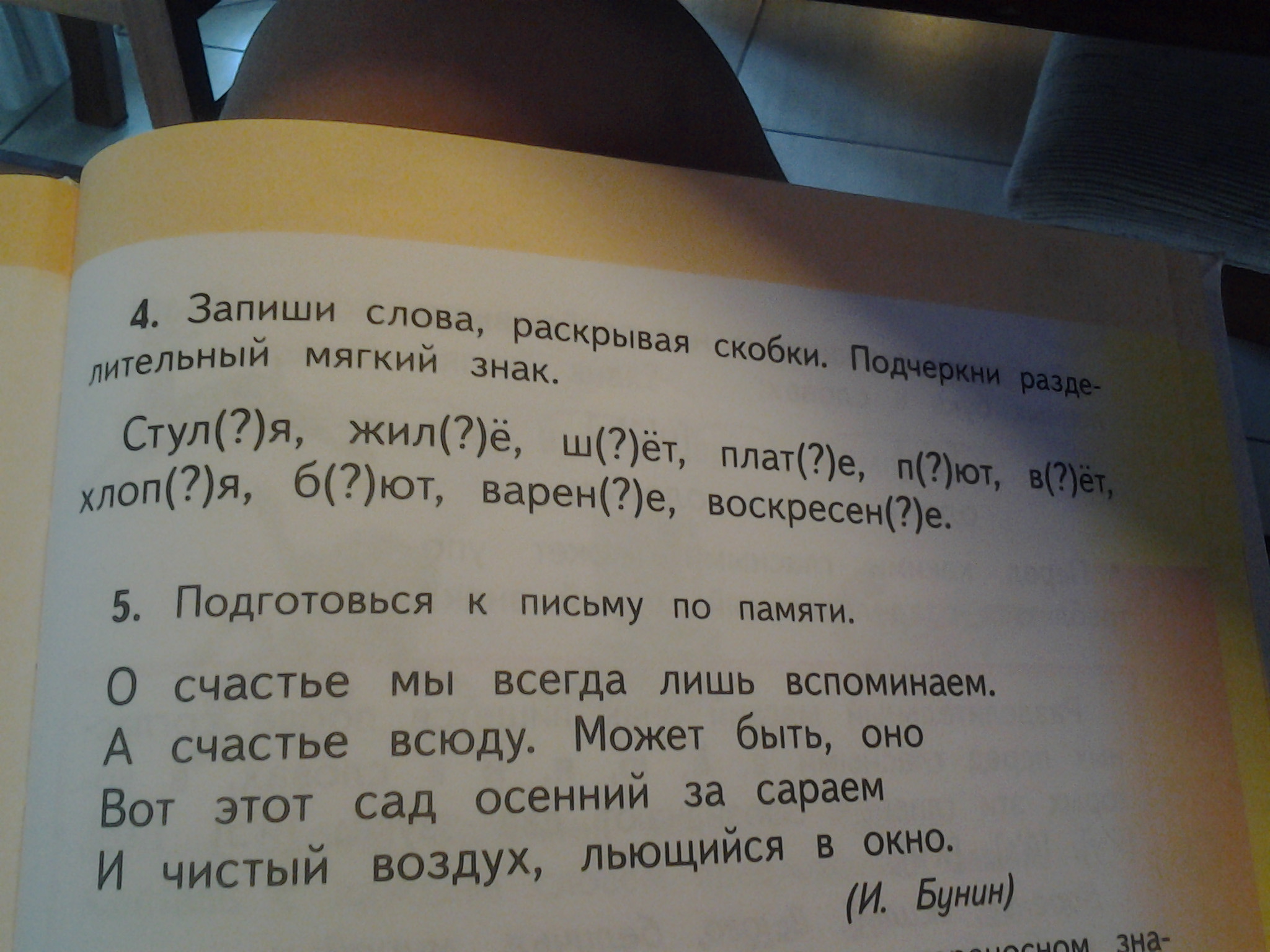 стулья, жильё, шьёт, платье, пьют, вьет, хлопья, бьют, варенье, воскресенье.