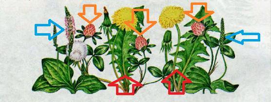 3 Всего видов растений (одуванчик,подорожник и клевер)
