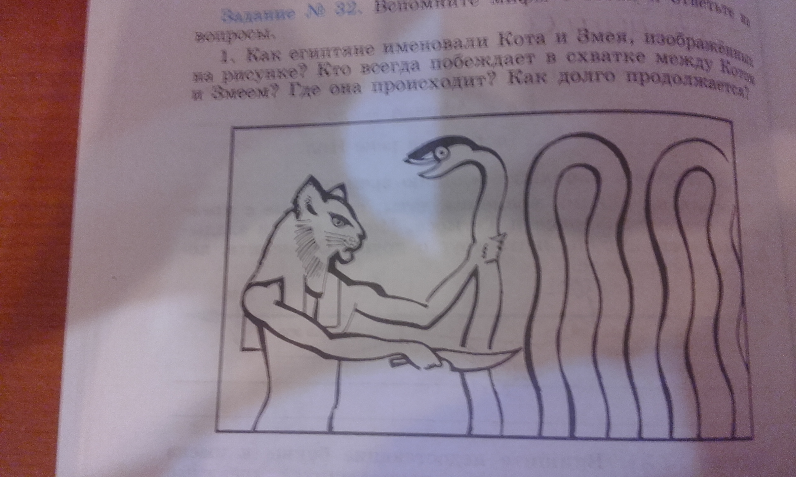 Кот-Амон Ра, Змей-Апоп. Побеждает Кот Амон. Схватка идет в подземном царстве, всю ночь.