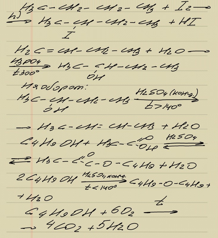 3)C4H9-OH=C4H8+H2O