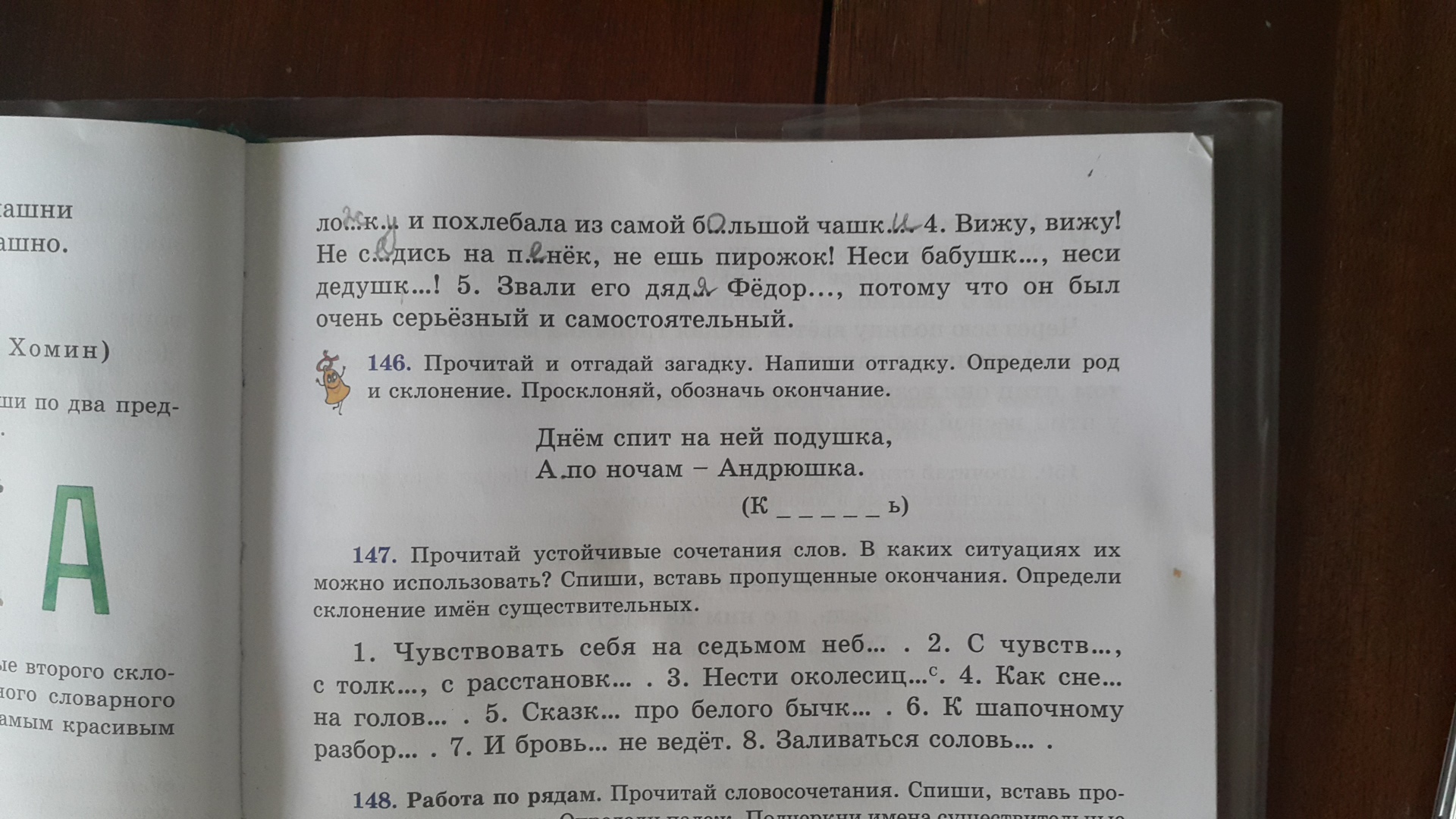 Определи падеж и склонение имён существительных.ложку и похлебала из самой большой чашки. и т.д
