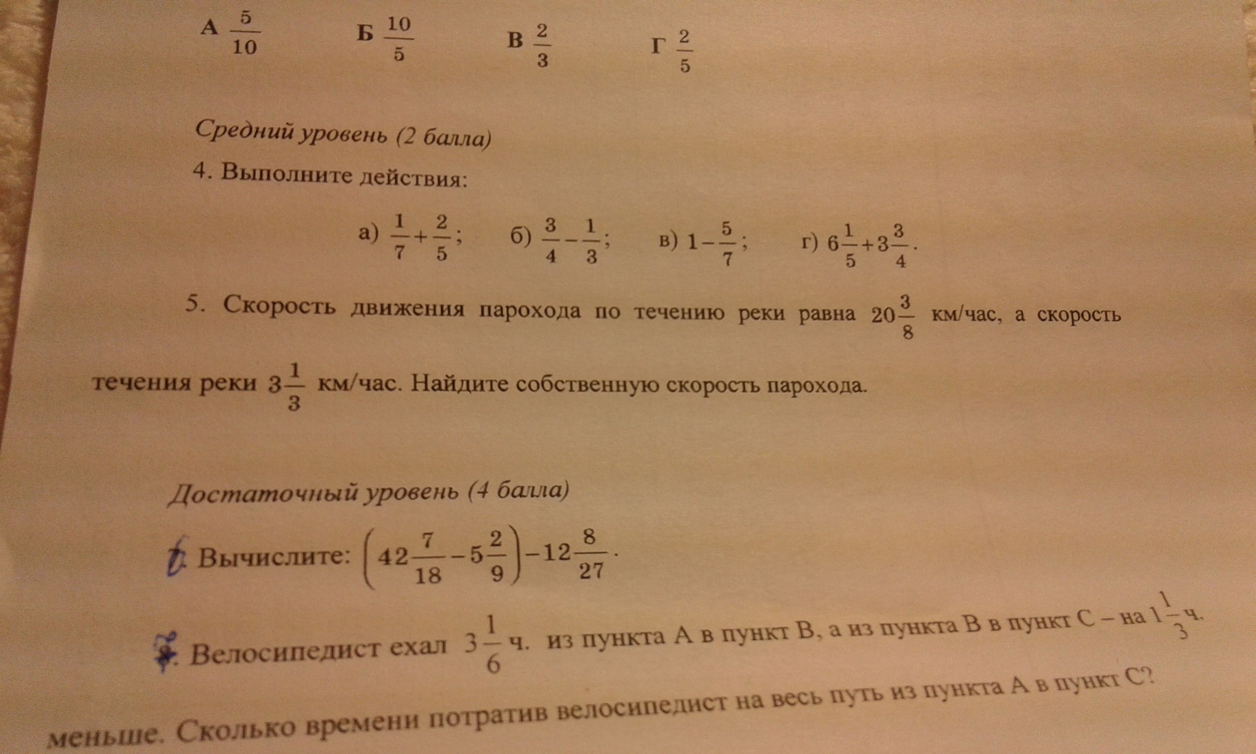 скорость движения парохода по течению реки равна 20 целых 3/8 км/ч,а скорость течения реки 3 целых 1/3 км/ч.Найдите собственную с скорость парохода(задание 5)