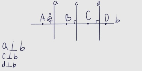 Начертите прямую.Обозначьте ее буквой b .отметьте на ней точки A.B.C.D так,чтобы AB=BC=CD=2см.Проведите прямые,проходящие через эти точки и перпендикулярные прямой b.
