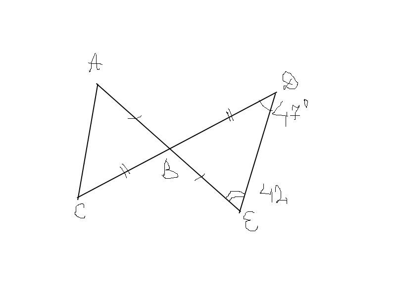 а) угол АВС = угол ДВЕ (как вертикальные) из условия AB=BE DB=BC, значит треугольник ABC равен треугольнику EBD (первый признак равенства треугольников)