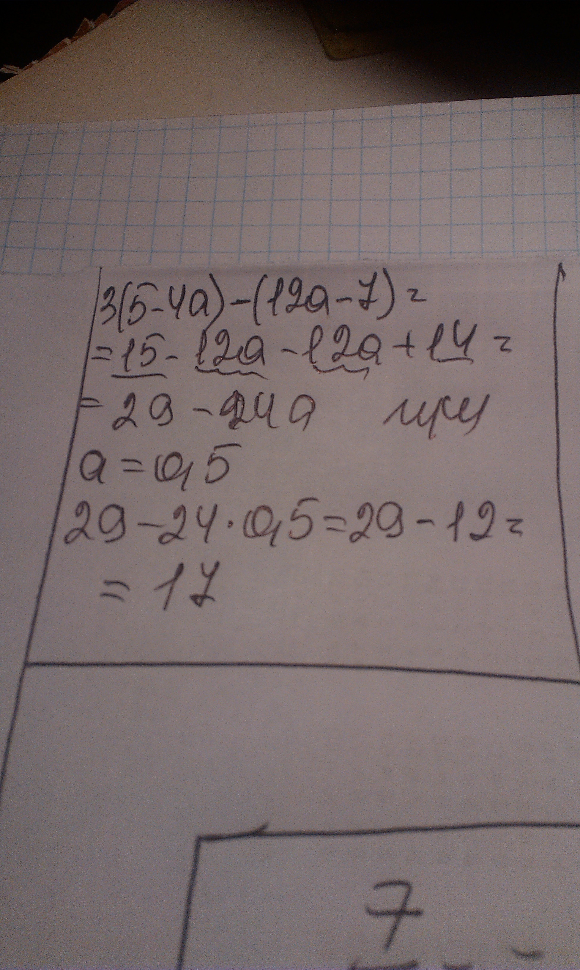 3(5-4а)-(12а-7)=15-12а-12а+7=22 - 24а