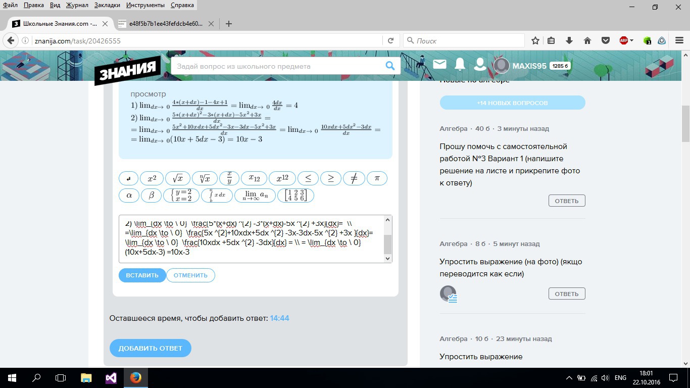 Вот так, только вместо dx нужно букву дельта писать греческую