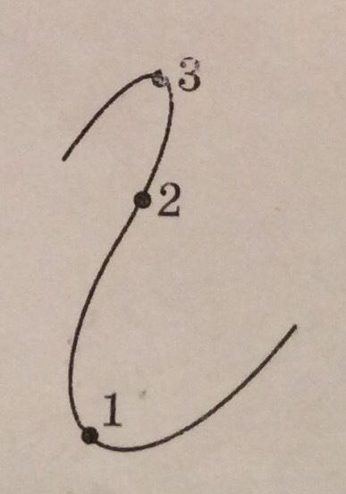 3. Тело движется с постоянной по модулю скоростью по траектории (см.рисунок). В какой из указанных точек траектории центростремительное ускорение максимально?