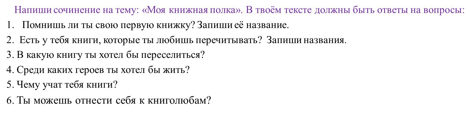 Напиши сочинение на тему: «Моя книжная полка». В твоём тексте должны быть ответы на вопросы: