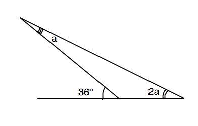 Примем коэффициент отношения внутренних углов треугольника равным а. Тогда а+2а=36°, откуда а=12°, 2а=2•12°=24°