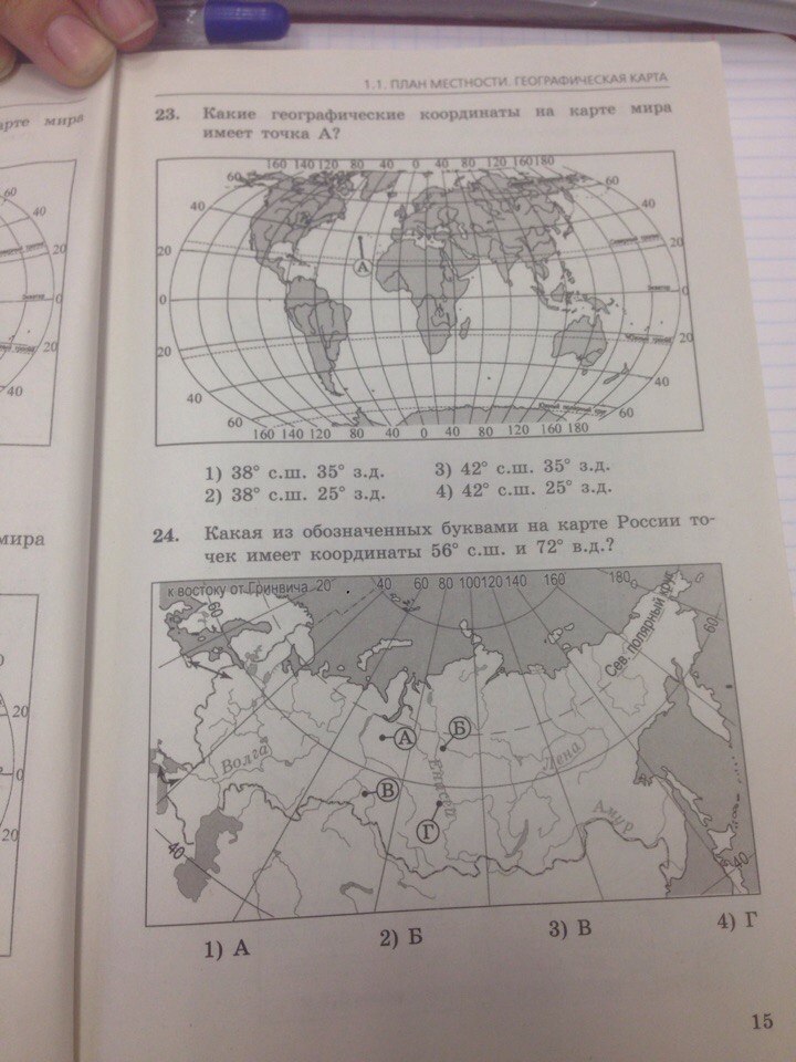 3) 42°с.ш 35з.д. 4) 42°с.ш 25°з.д