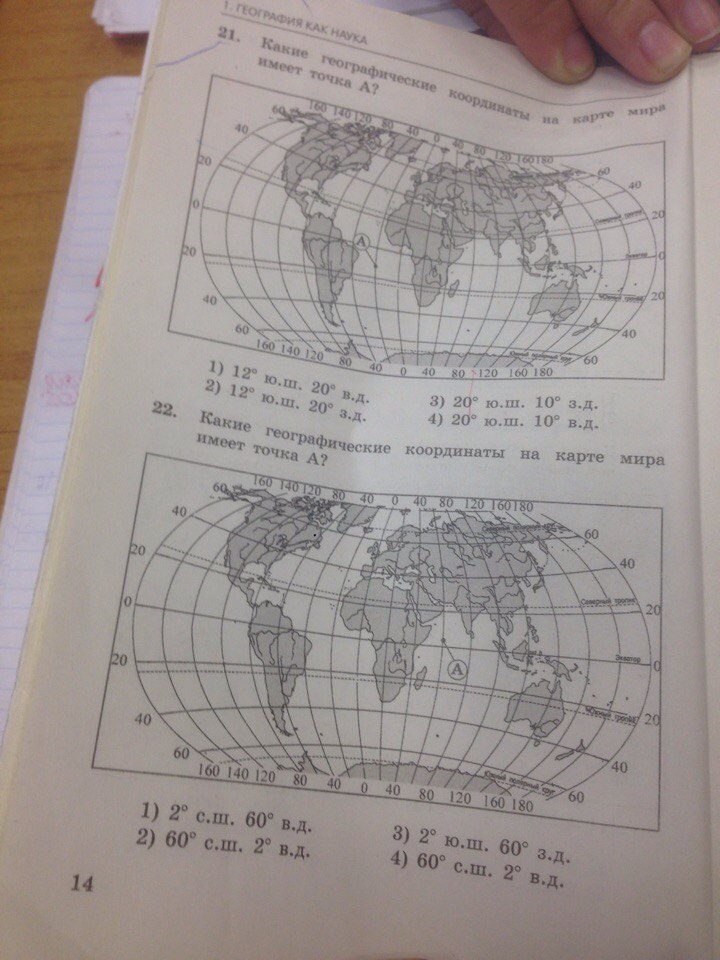 21. Какие географические координаты на карте мира имеет точка А? 1) 12°ю.ш 20°в.д. 2) 20°ю.ш 10°з.д 2) 12°ю.ш 20°з.д. 4) 20°ю.ш 10°в.д