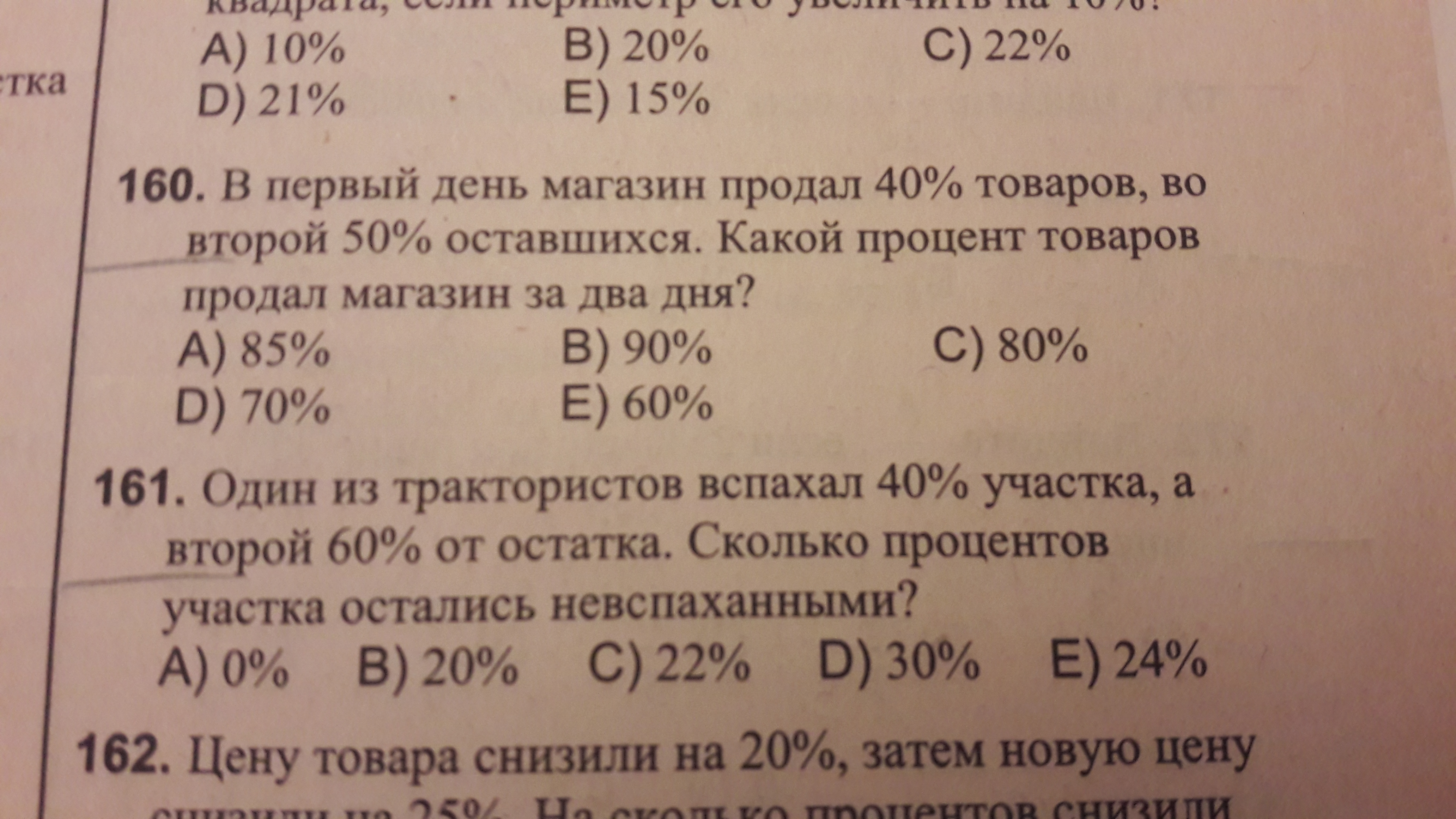 50% от 60% - это половина от 60%, то есть 60%:2=30% от всех товаров продали во второй день