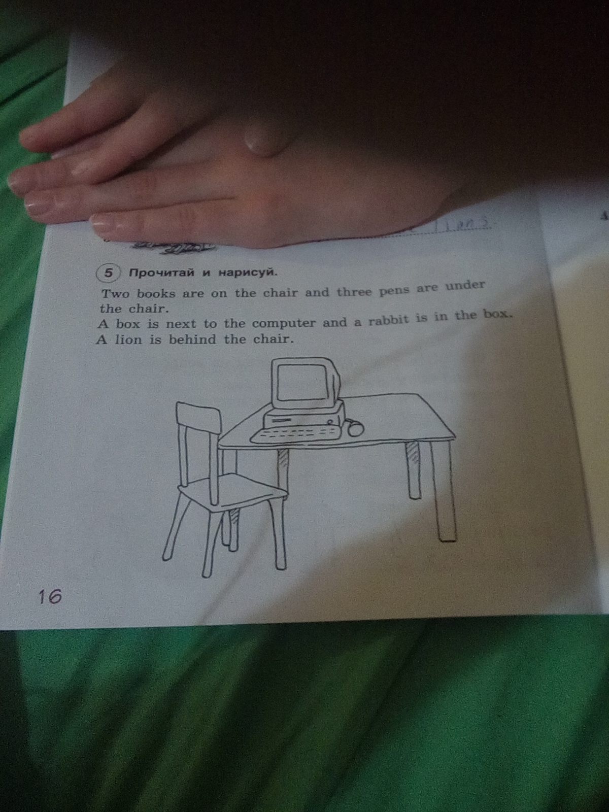 на столе нарисуй две книги и 3 ручки под стулом.коробку рядом с компьютером а в коробке зайчика и нарисуй льва позади