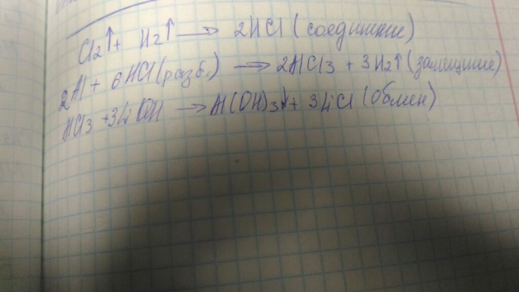 Сl2+H2=2HCl (cоединение)