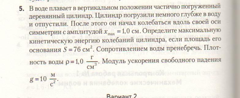 Eк=A=p*g*S*X²/2=1000*10*76*10^-4*10^-4/2=3,8*10^-3 Дж