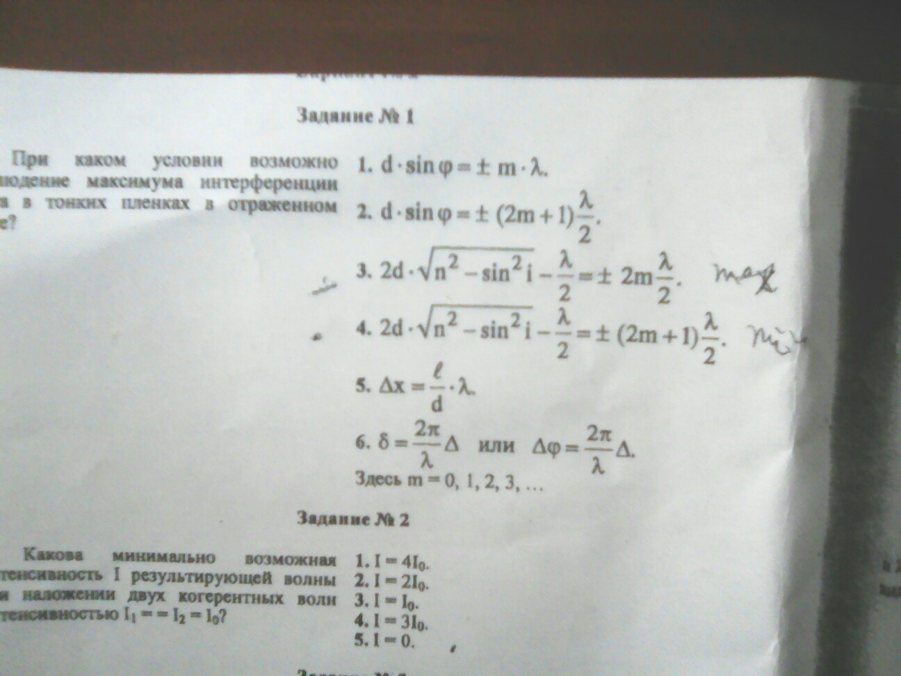 И вообще, проще воспользоваться правилом: Если на оптической разнице хода Δ укладывается ЦЕЛОЕ ЧИСЛО волн (или четное число полуволн), имеем максимум. Значит в первой задаче правильный ответ 3