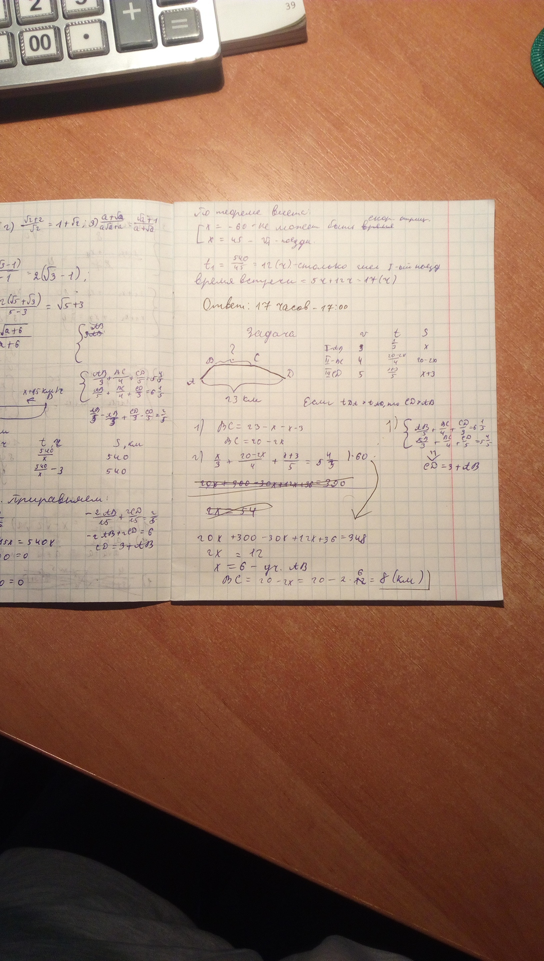 Создаешь систему, которая справа. Вычитаешь 1-ое уравнение из 2-го. Получается, что СД=3+АВ.