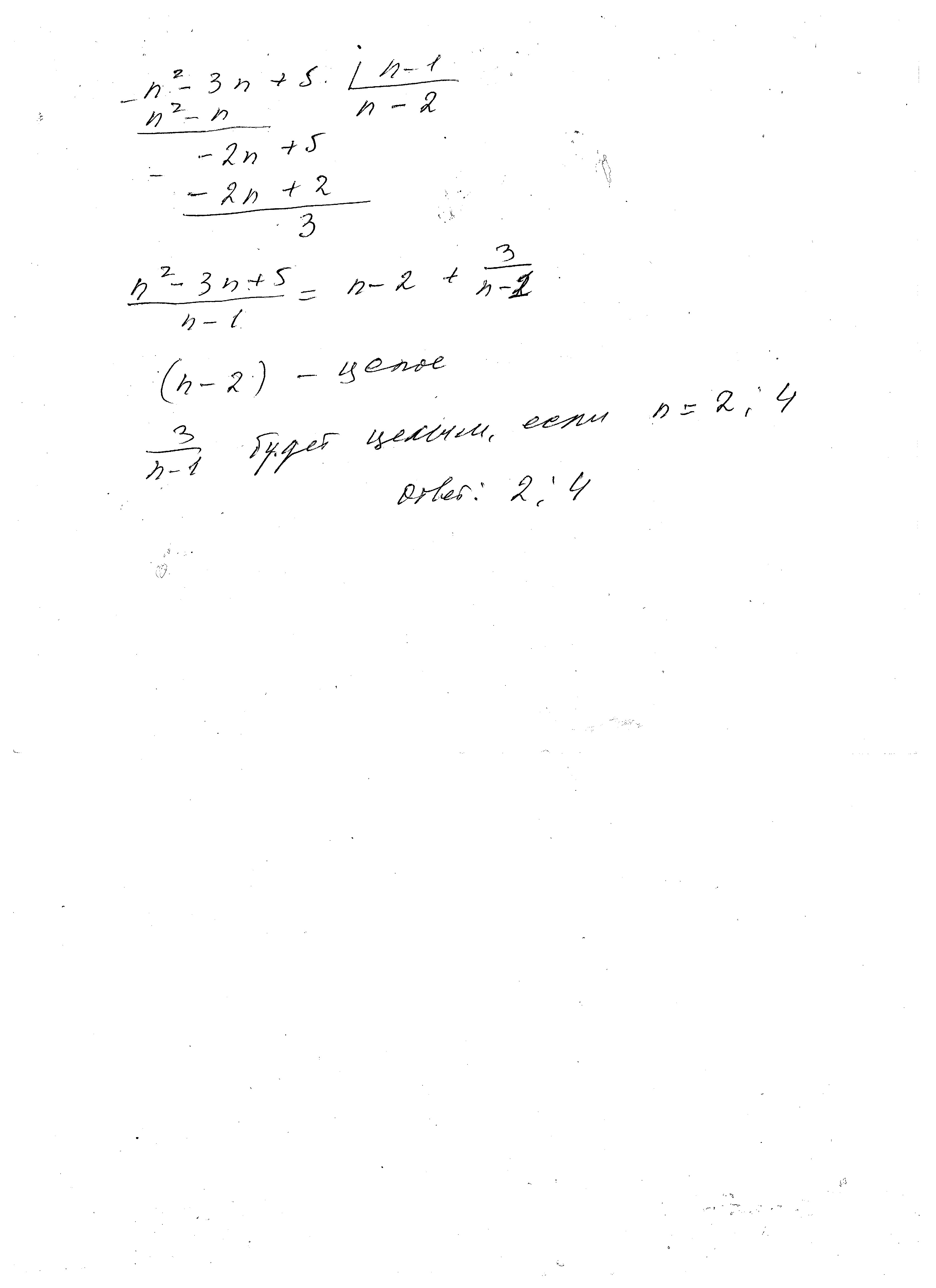 Определите, при каких натуральных значениях n данное выражение являются целыми чиcлами n^2-3n+5/n-1 /-дробь