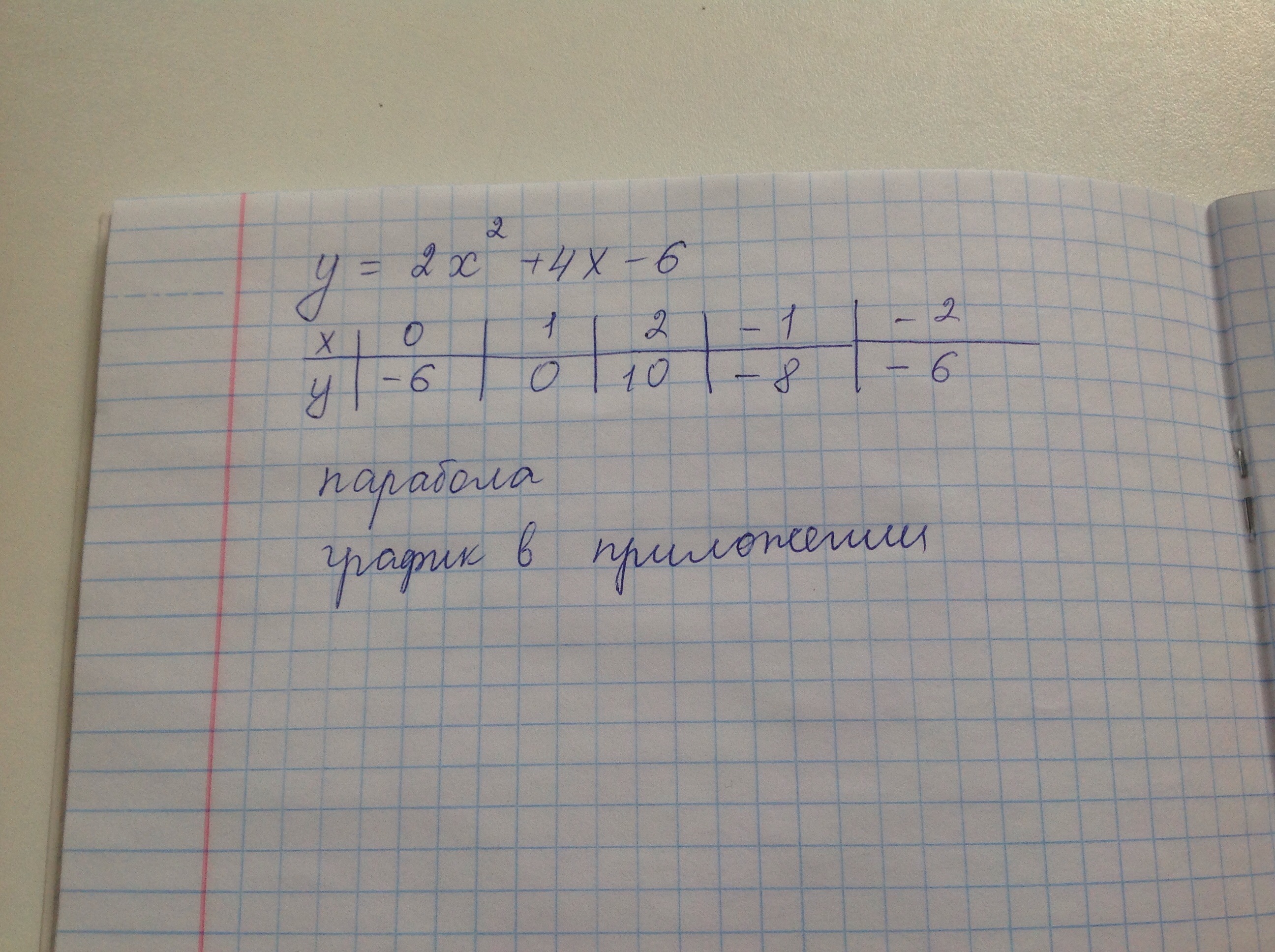 решите пожалуйста и сфотографируйте график или подробно опишите :постройте график функции 2х в квадрате + 4х - 6 срочно!!!!!!!!!!!!!!!!!!!!!!!!!!!!!!!!