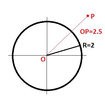 опеределите где расположена точка P если OP=2,5см(на окружности внутри окружности или вне окружности СРОЧНО