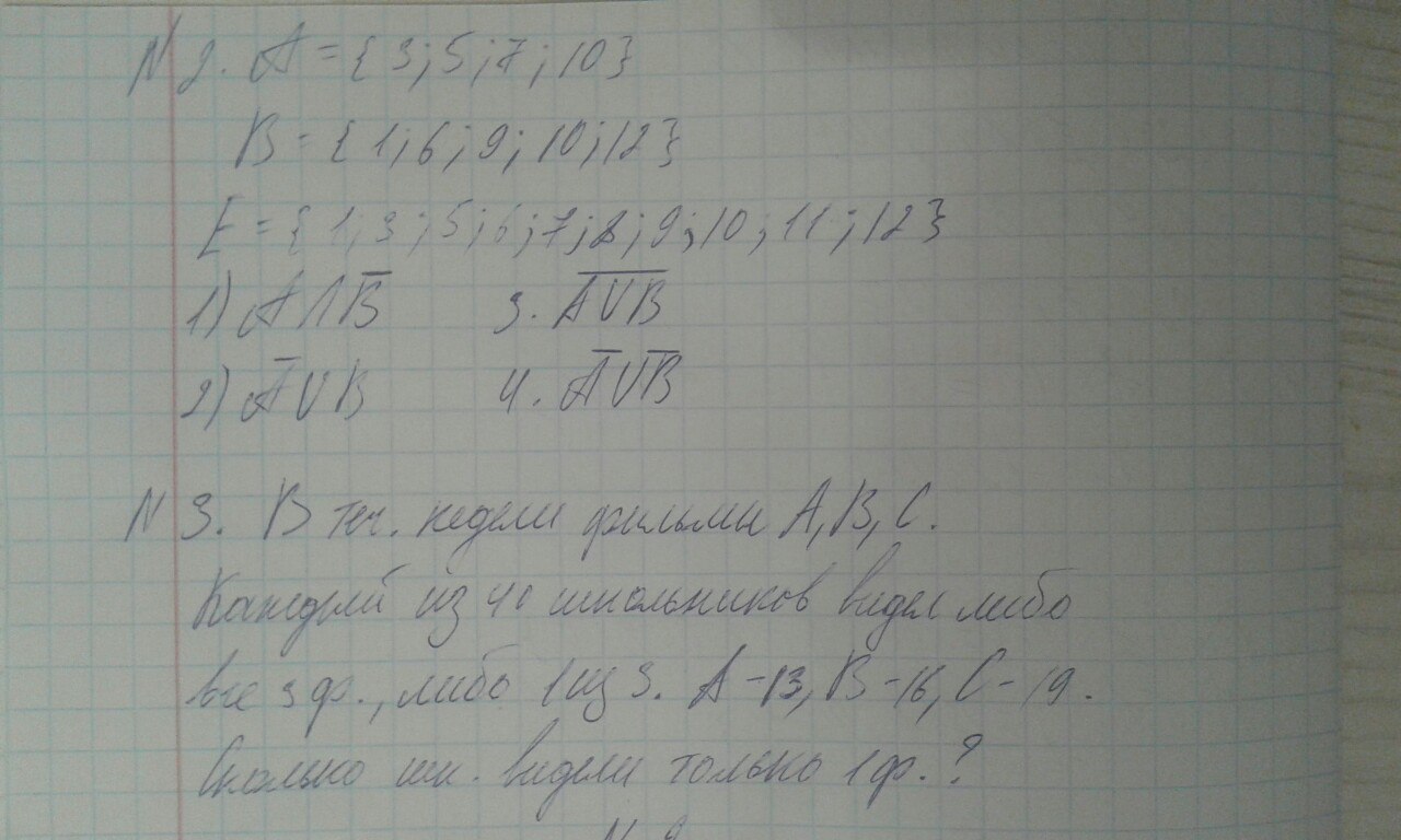 3) В течение недели были фильмы А,В,С. Каждый из 40 школьников видел либо все 3 фильма,либо 1 из 3. А-13, В-16, С-19. Сколько школьников посмотрели только 1 фильм?