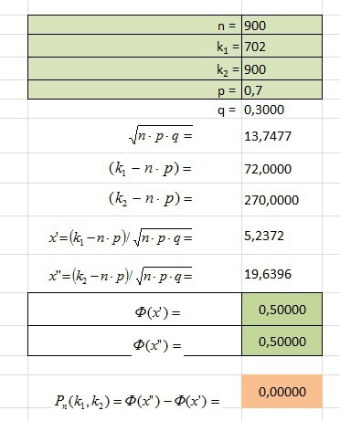 Вероятность появления события в каждом испытании равна 0,7. Найти вероятность того, что в 900 испытаниях событие наступит не менее 702 раз.(Схема Бернулли)