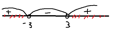 ОТВЕТ: x∈(-∞; -3)∪(3; +∞)