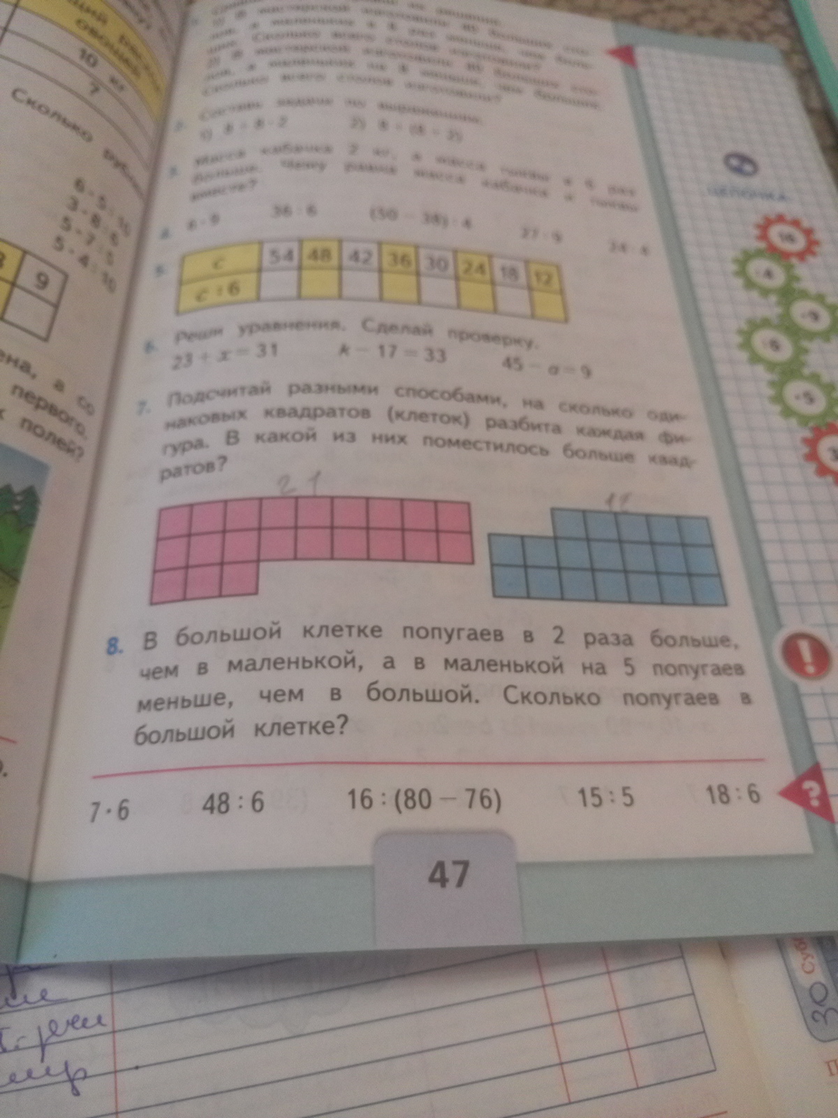 Посчитайте разными способе На сколько одинаковых квадратов разбита каждая фигура в какой из них поместилось больше квадратов