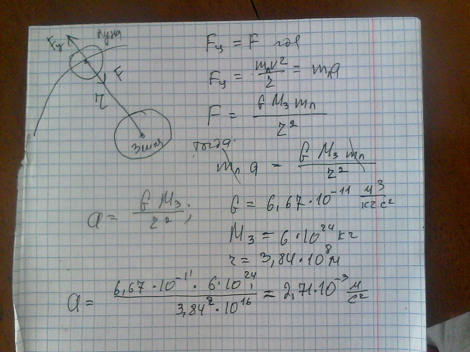вычислите ускорение луны движущейся вокруг земли по окружности расстояние между центрами земли и луны пррмите равным 400000 км радиус земли 6400 км ( g3=10м/с)
