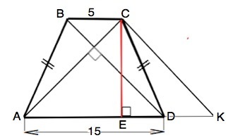 Рассмотрим равнобедренную трапецию АВСD, АС⊥ВD