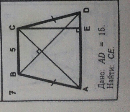 Следовательно, треугольник АСК прямоугольный равнобедренный, его высота, как высота равнобедренного треугольника, является его медианой, а острые углы равны 45°, и ∆ АС=∆ КСЕ с общим катетом СЕ.