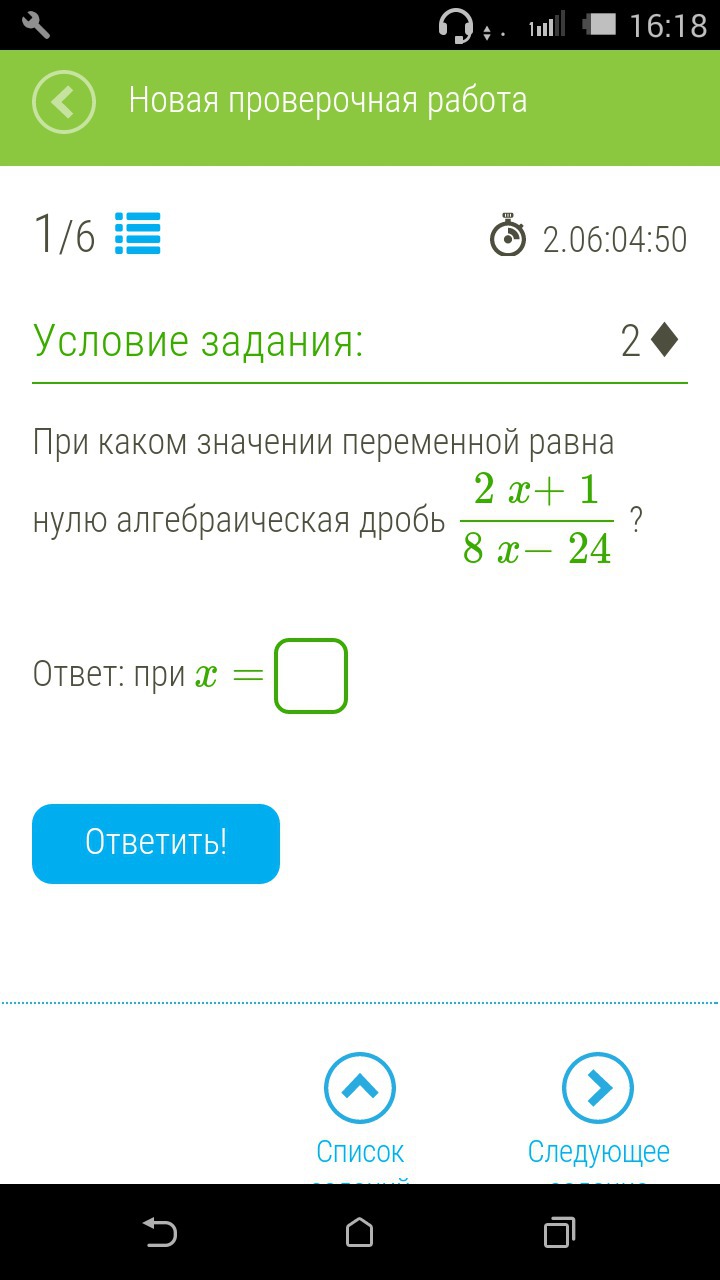 сперва необходимо написать ОДЗ: 8х - 24/=(неравно) 0, получаем, что х/=3. теперь решаем числитель: 2х +1 = 0, х= - 0,25.