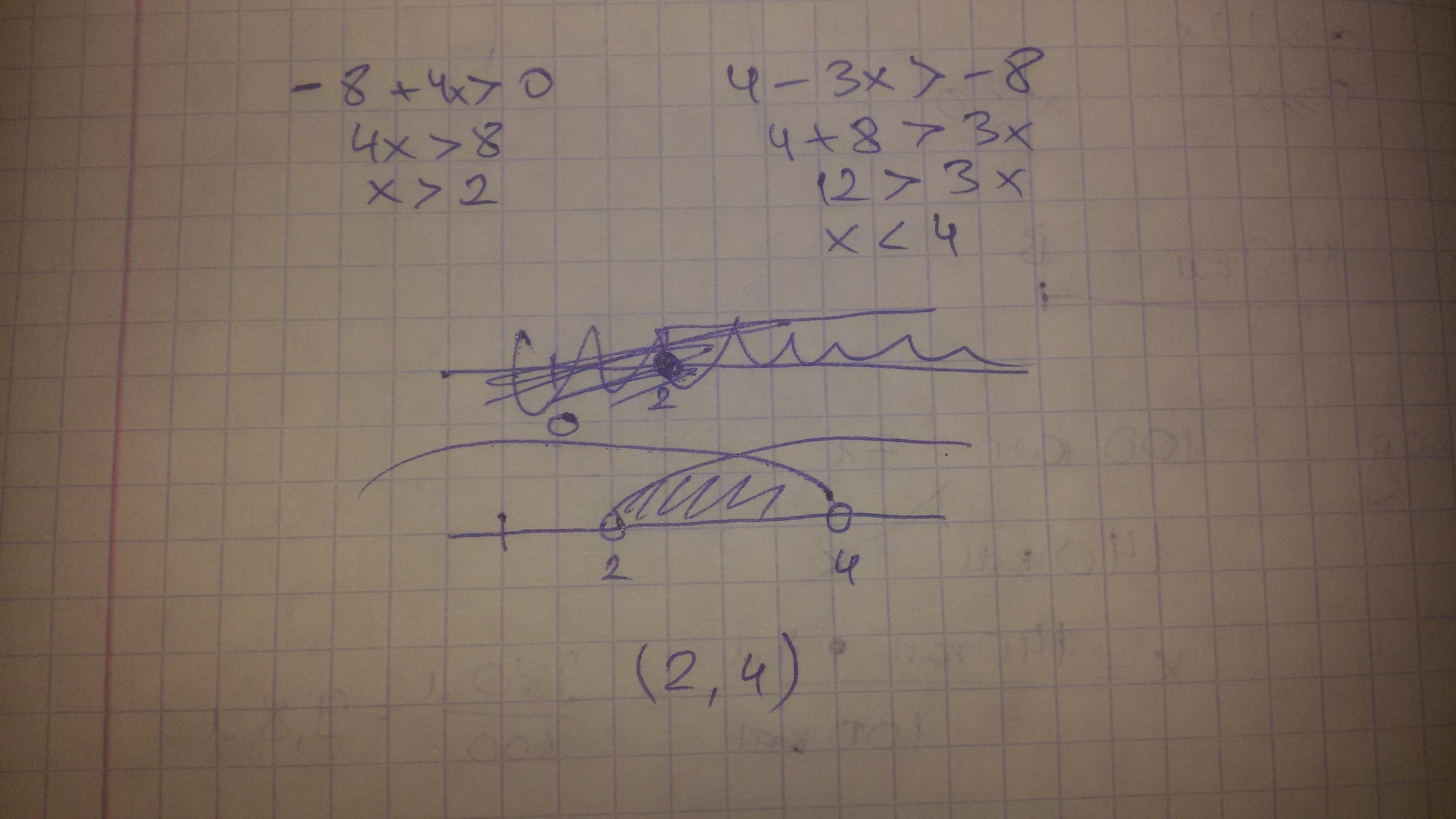 1) нет решения 2) ( бесконечность;4) 3) (2:бесконечность) 4) ( 2:4)