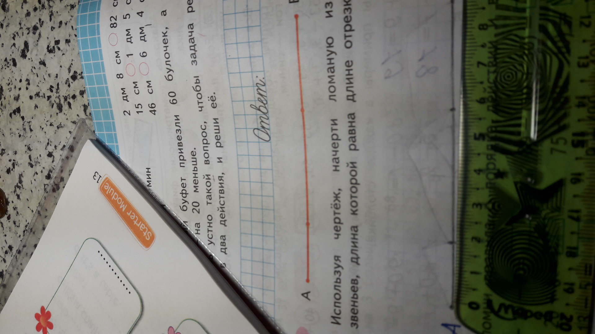 Используя чертёж начерти ломаную из трёх звеньев длина которой равна длине отрезка как у данной ломаной