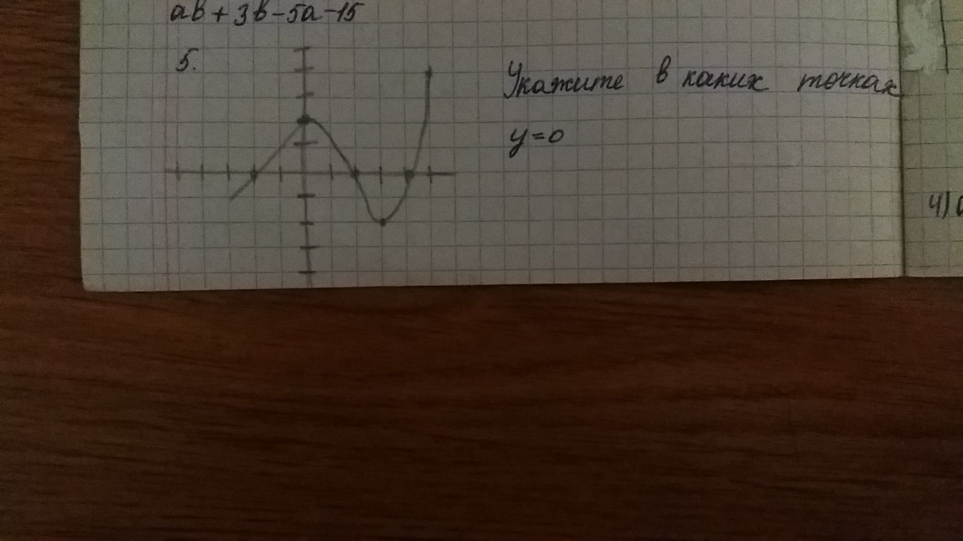 если одно деление это 1, то y = 0 при x = -2; x = 2; x = 4