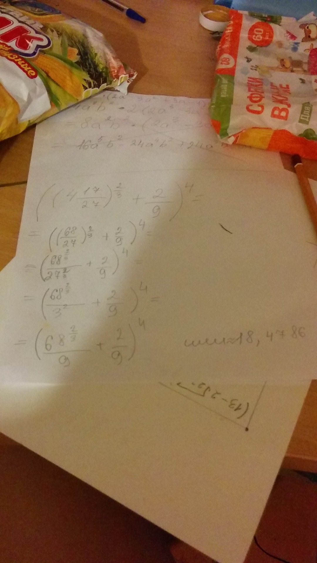 (5/3+2/9)в 4 степ=(17/9) в 4 степе=83521/6561=12,7