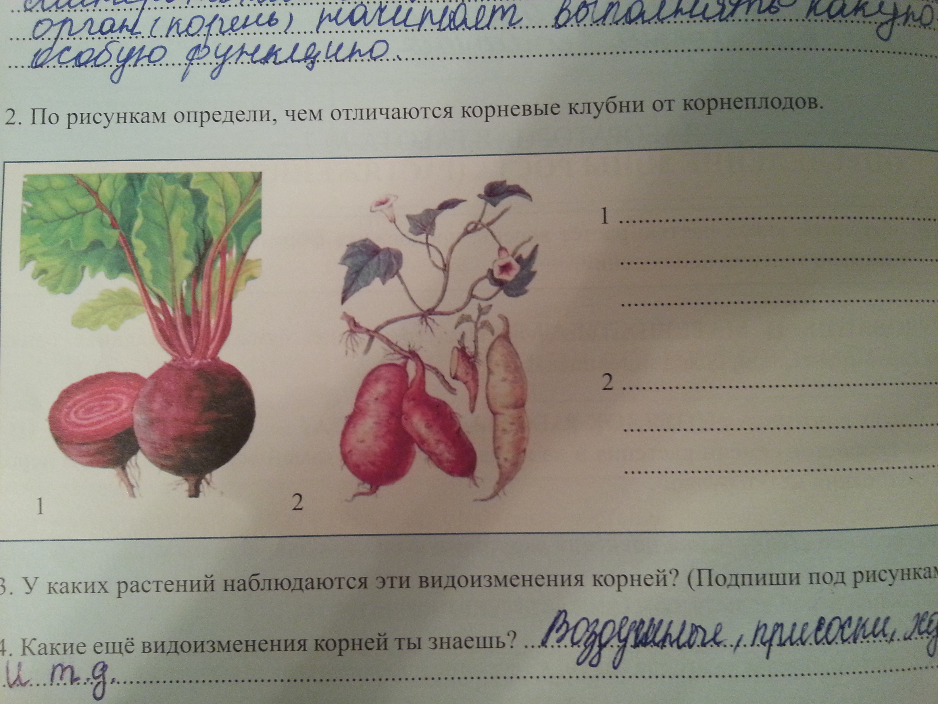 Помогите пожалуйста задание 2 по рисункам определи,чем отличаются корневые клубни от корнеплодов