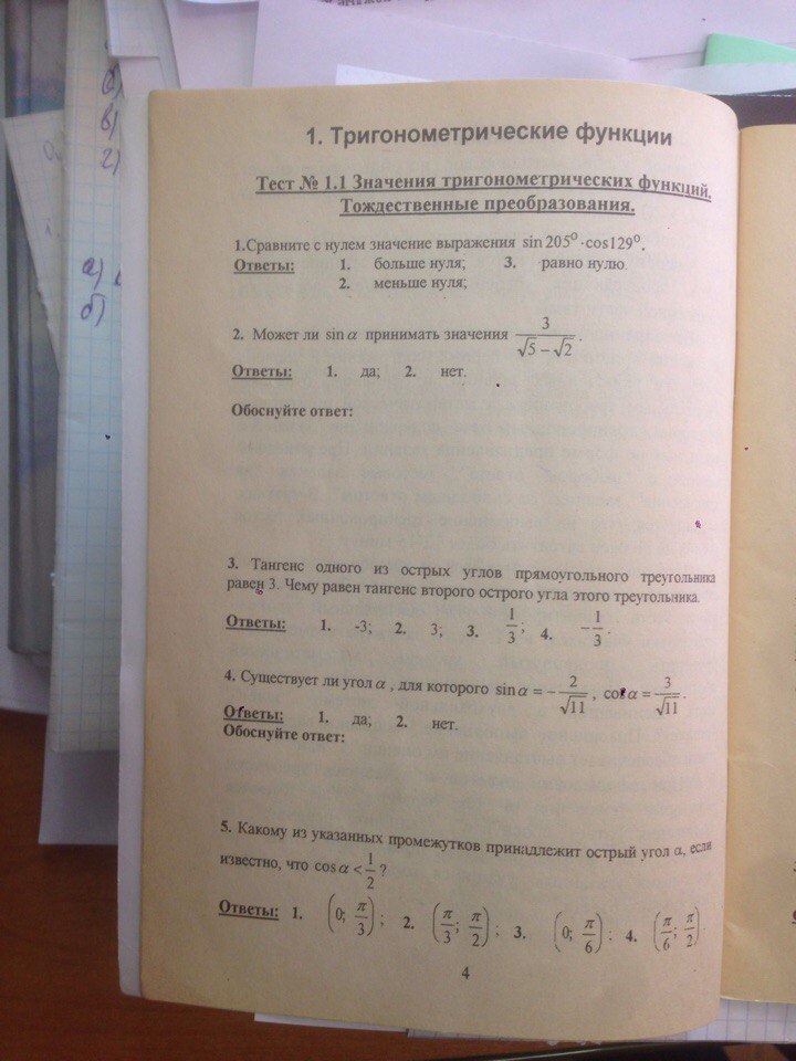 Тест 1.1 1.sin205°·cos126°= "-"· ·"-"=+ ответ больше 0