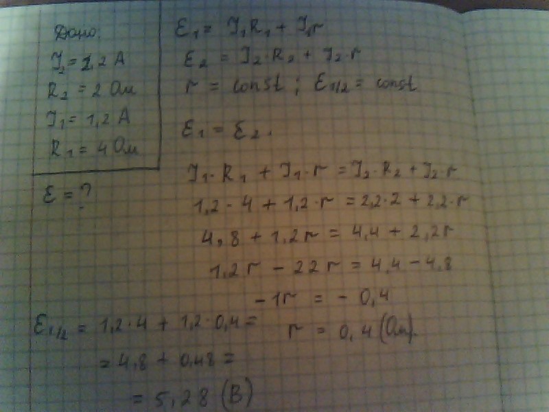 1,2 А (4 Ом + r) = 2.2 А (2+ r)