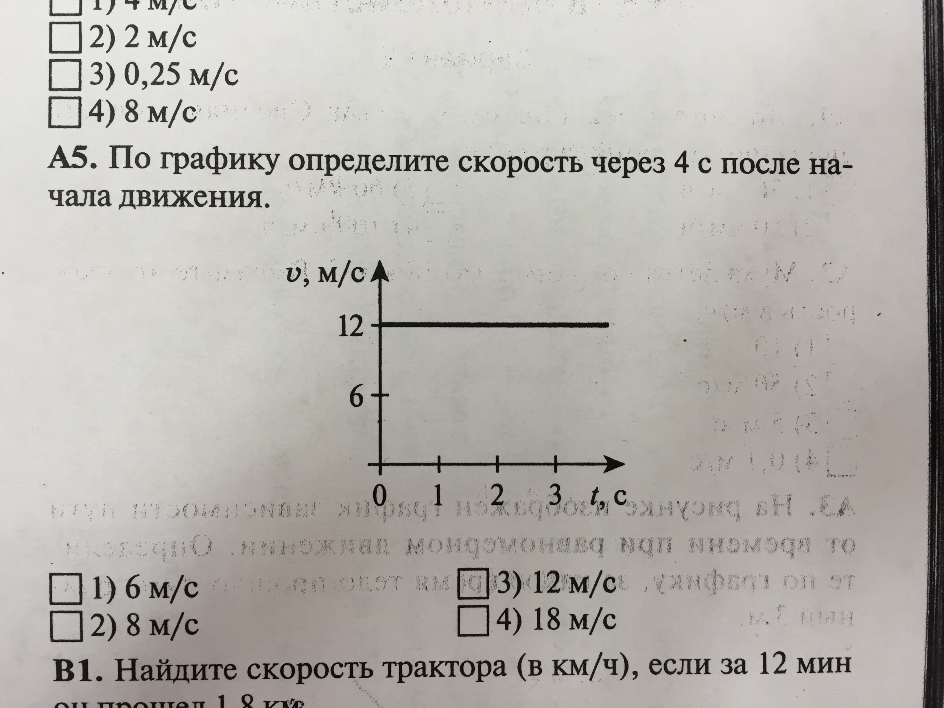 Это равномерное прямолинейное движение. Тело движется с постоянной скоростью(неизменной), поэтому правильным ответом будет 3) 12 м/с