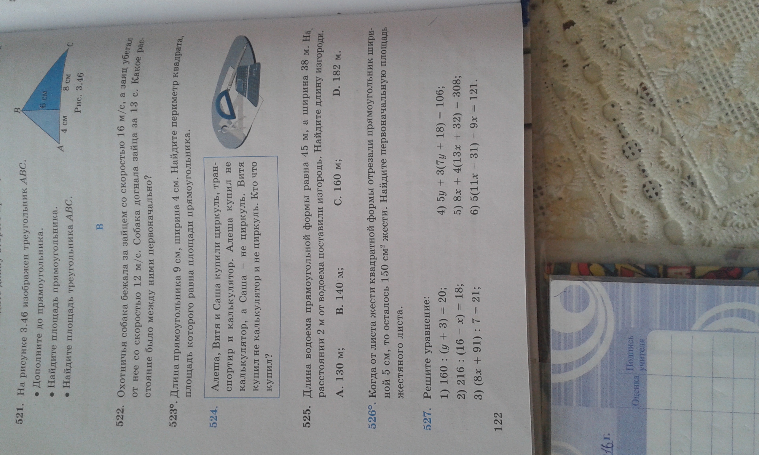 Когда отрезали прямоугольник шириной 5 см, то лист стал прямоугольным с размерами Х и (Х-5) и площадью Х*(Х-5).