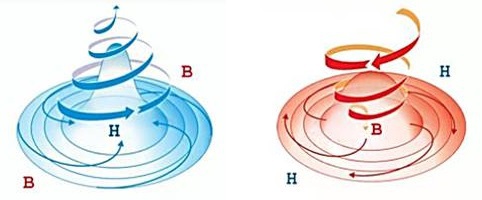 А) от периферии к центру, отклоняясь по часовой стрелке
