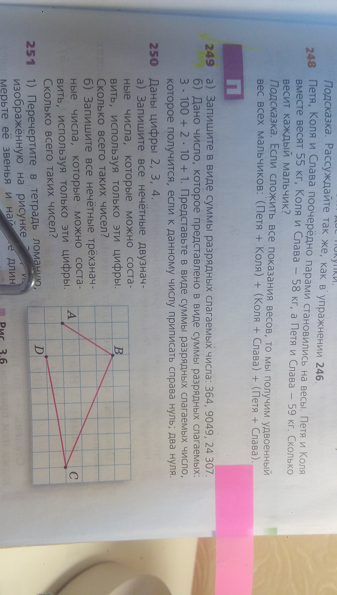 100*3+10*6+4 1000*9+100*0+10*4+9 10000*2+1000*4+100*3+10*0+7