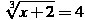 1)![sqrt[3]{x+2}=4 sqrt[3]{x+2}=4](https://tex.z-dn.net/?f=+sqrt%5B3%5D%7Bx%2B2%7D%3D4+)
