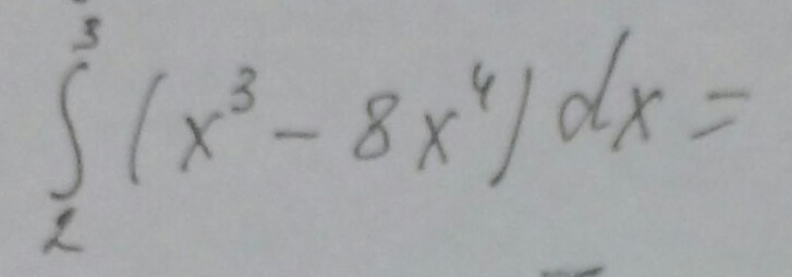 intlimits^3_2{(x^3-8x^4)} , dx =( frac{x^4}{4}- frac{8x^5}{5}  )^3_2=