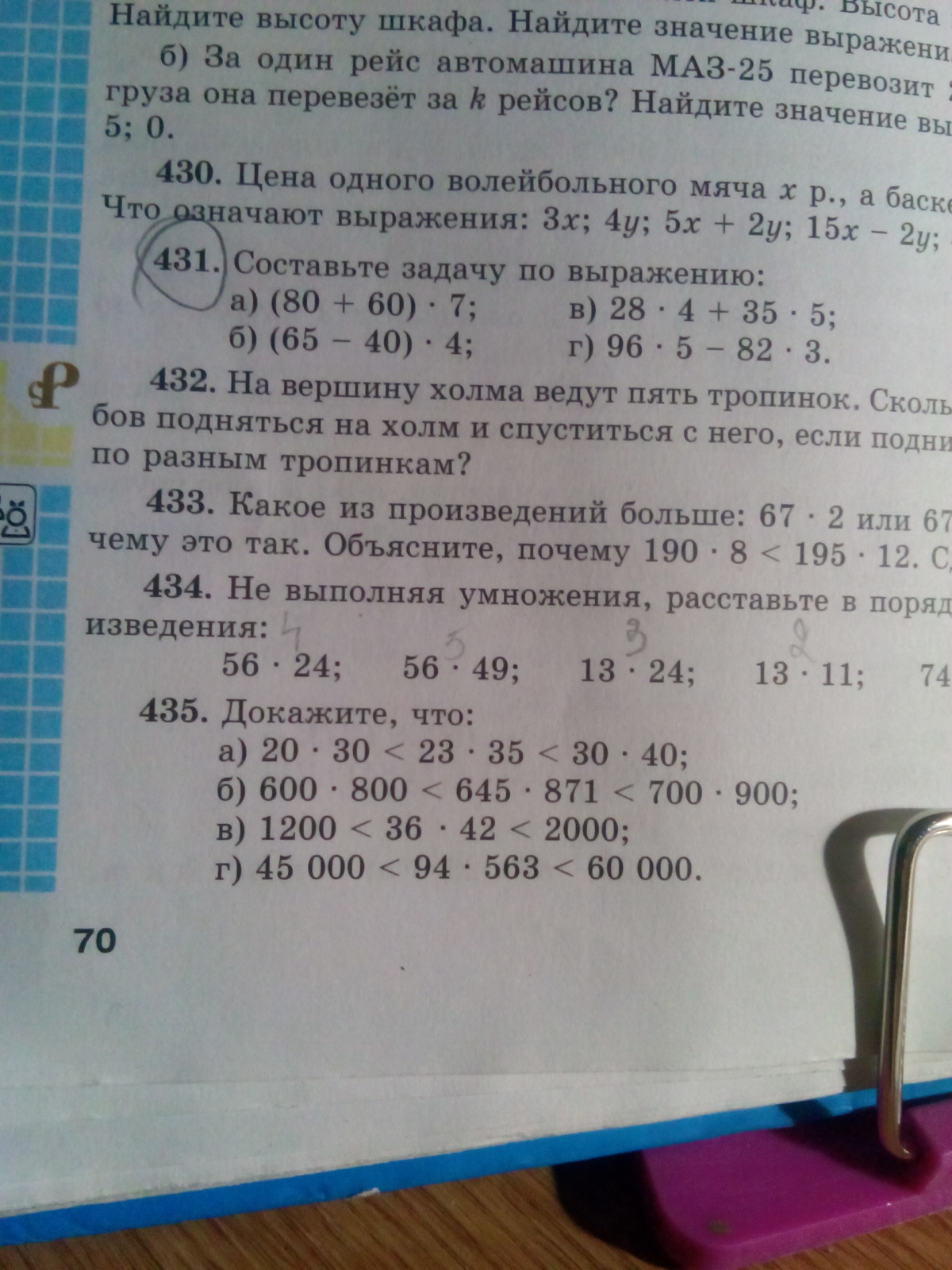 составьте задачу по выражению 1) (65-40)•4 2) 28•4+35•5 3) 96•5-82•3 Помогите пожалуйста. Я не могу составить задачи ( задание которое обведено)