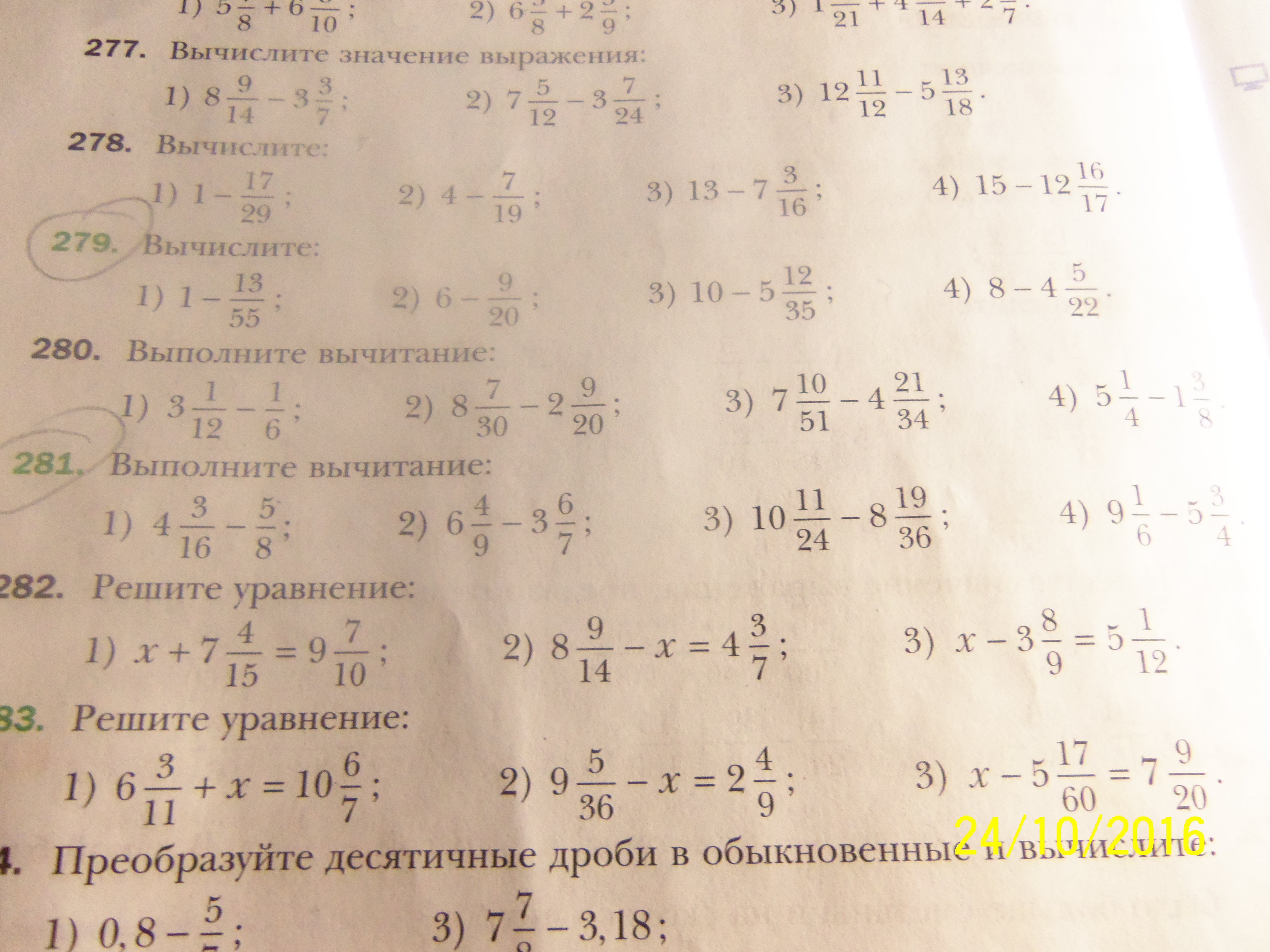 б) 6 4/9 - 3 6/7= 58/9 - 27/7 = 406/63 - 243/63 = 163/63 = 2 37/63