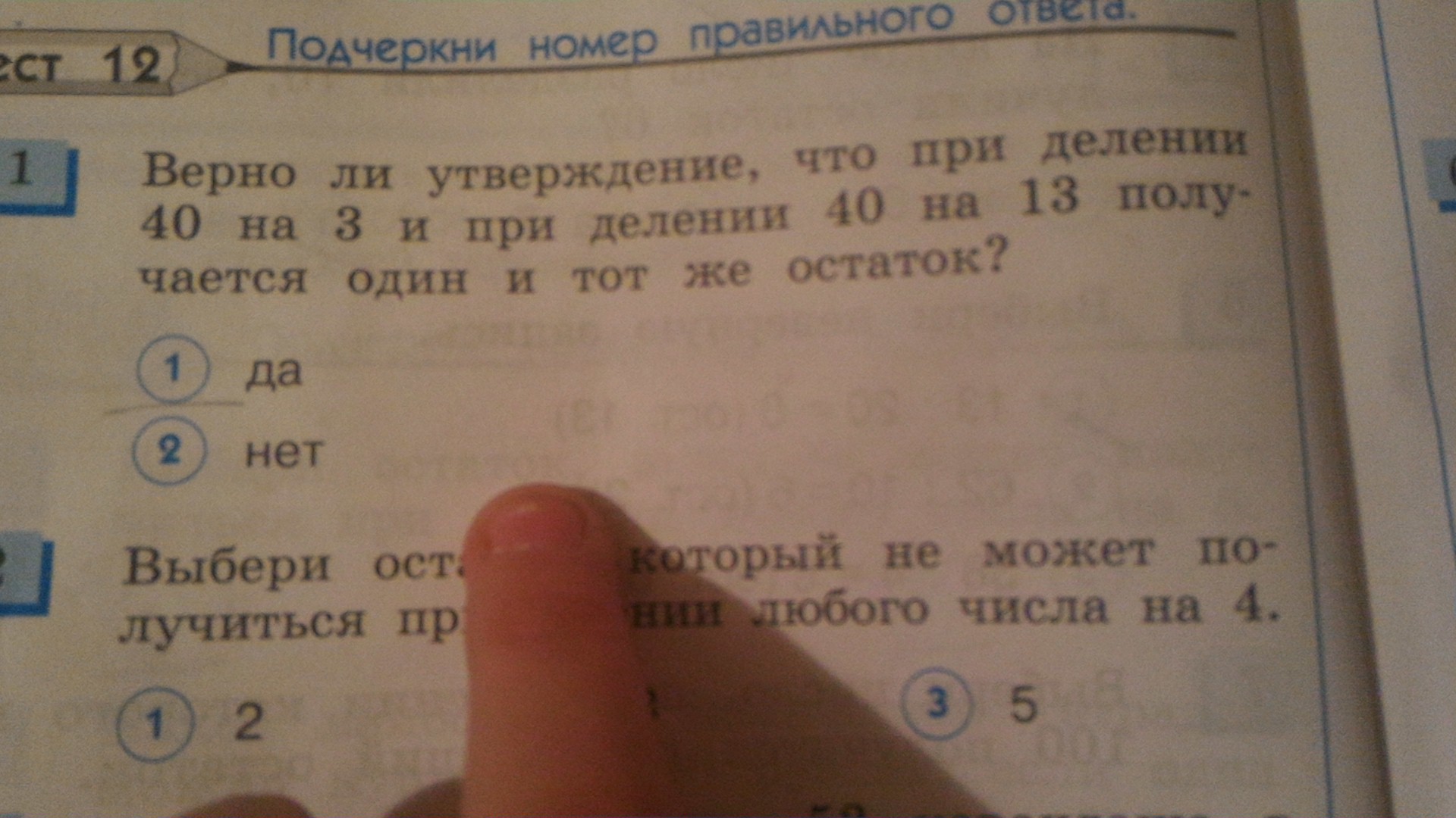 верно ли утверждение, чтт при делении 40 на 3 и при лелении 40 на 13 получается одно и тот же остаток