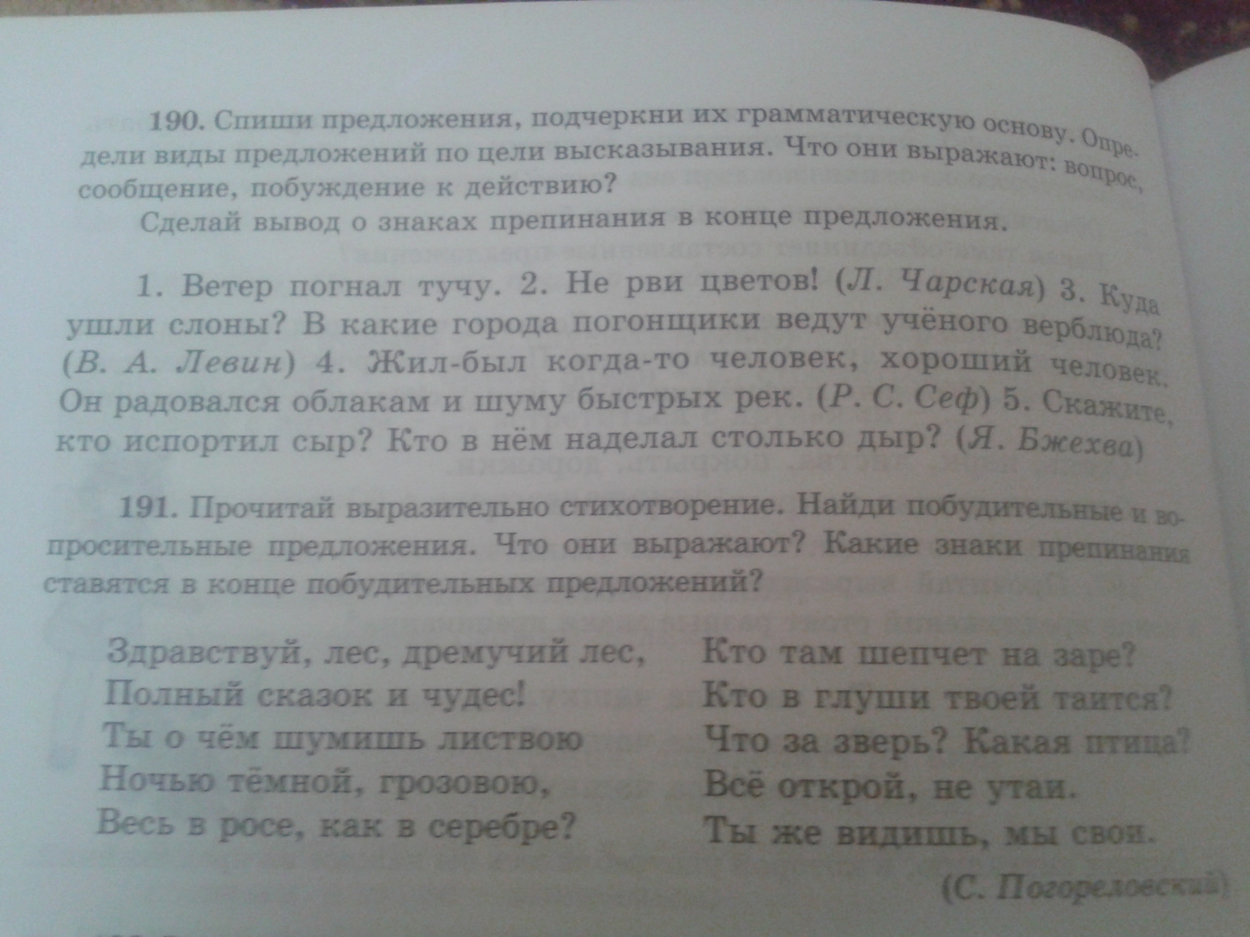 1 (что?)ветер (что сделал?)погнал-2) (что делай?) рви 3)(кто?) слоны (что сделали?) ушли 4)(кто?) человек (что делал?) жил-был. (кто?) он (что делал?) радовался 5)(что сделайте?) скажите (кто?) кто (что сделал?) наделал.Вроде ,всё!:)