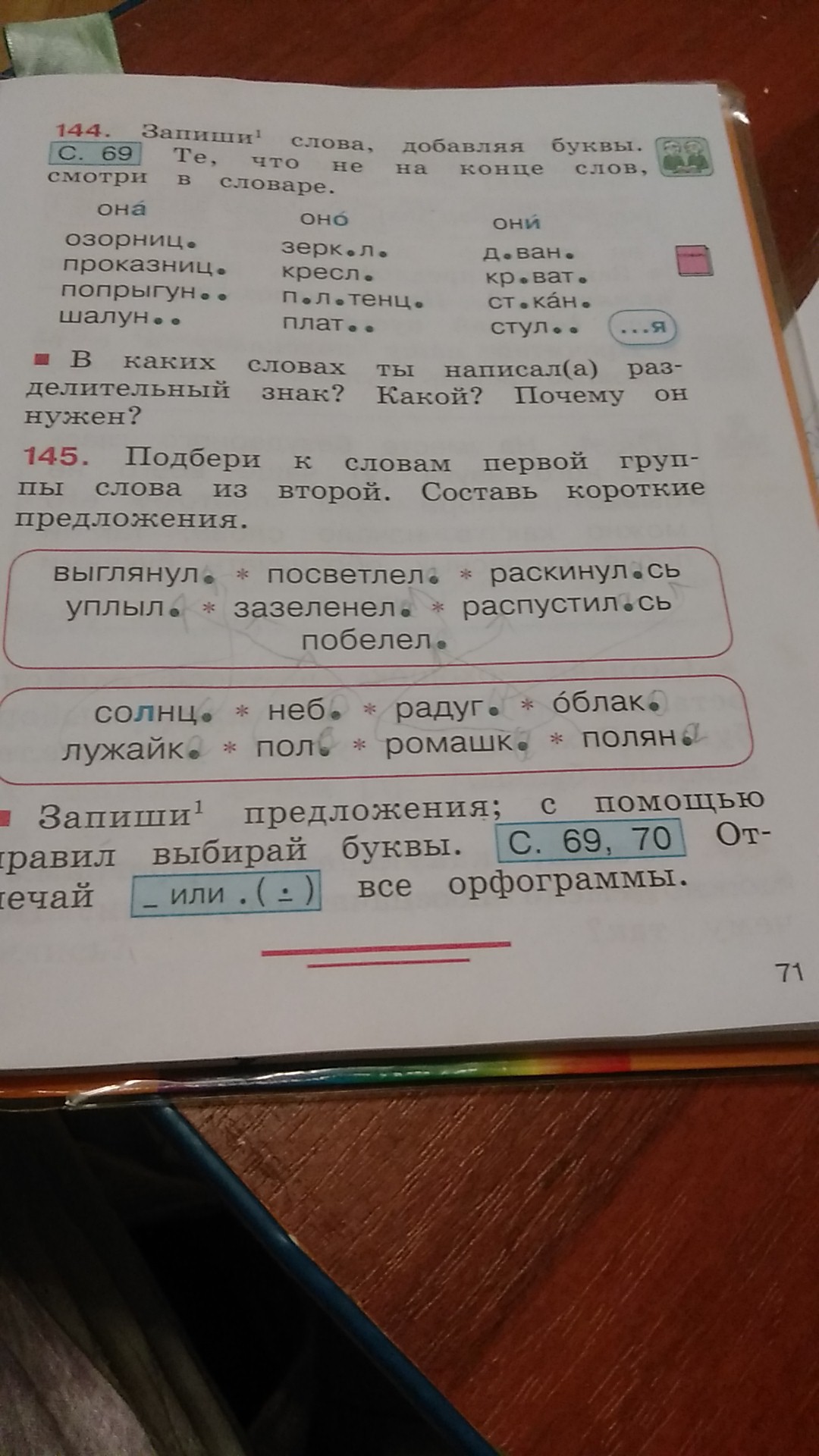 Выглянуло солнце, просветило небо,уплыло облако,зазеленела поляна,побелела ромашка,раскинулась радуга,распустилась лужайка